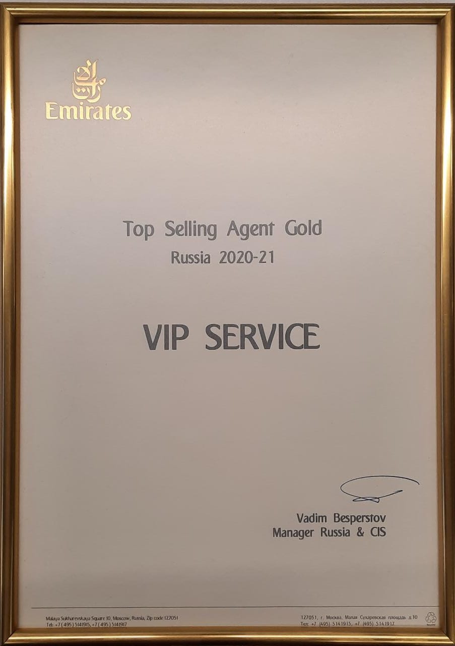 Холдинг Випсервис был назван «Лучшим партнёром по продажам в России» за достижения в области развития туризма в рамках глобальной маршрутной сети авиакомпании.